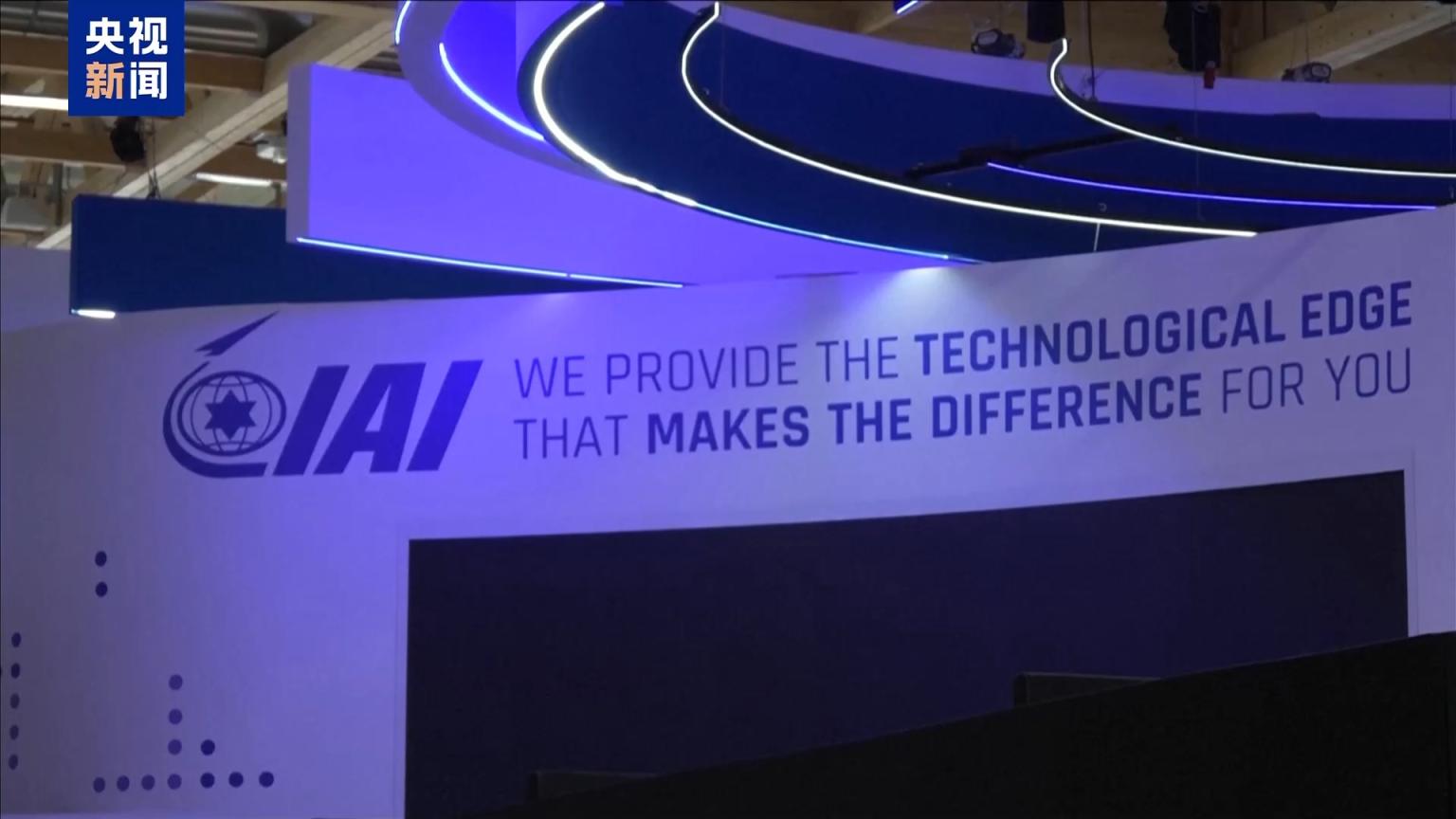 画面中可以看到,以色列的多个展台已被黑色挡板遮住,与其他展区隔离。包括以色列埃尔比特系统公司、拉斐尔公司、以色列飞机工业有限公司和尤维申公司在内的展台均被关闭。